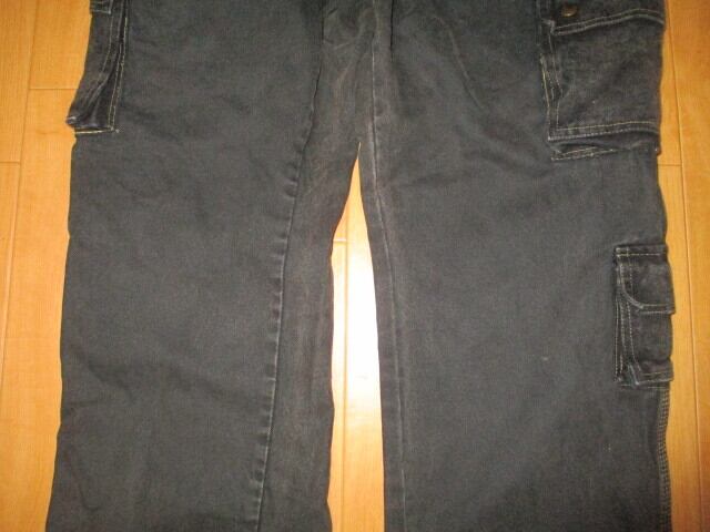 (仕様)中古のペインターパンツに後付けカーゴポケット4つ、黒染め、バイオウォッシュ(茶芯が出て錆色のような雰囲気ある色になっております)、ウエスト部前後にプリーツ施し(良いシルエットになっております)、